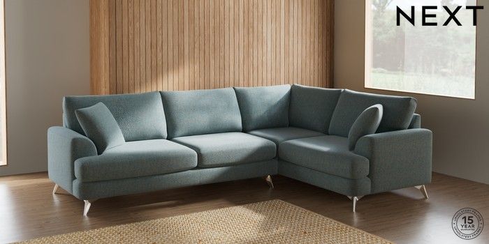 7.2.10 Parker Large Corner Sofa - Right Hand Chunky Marl Mid Blue High Metal - Chrome | Made Click here to use our website with more accessibility support, for example screen readers