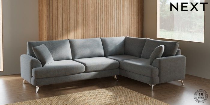 7.2.10 Parker Large Corner Sofa - Right Hand Chunky Marl Mid Grey High Metal - Chrome | Made Click here to use our website with more accessibility support, for example screen readers
