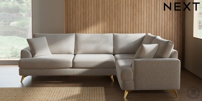 7.2.10 Parker Large Corner Sofa - Right Hand Chunky Marl Oyster High Metal - Brass | Made Click here to use our website with more accessibility support, for example screen readers
