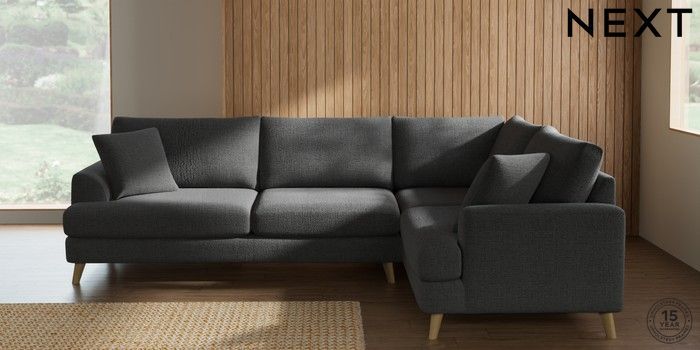7.2.10 Parker Large Corner Sofa - Right Hand Chunky Texture Dark Grey Low Retro Tapered - Light | Made Click here to use our website with more accessibility support, for example screen readers