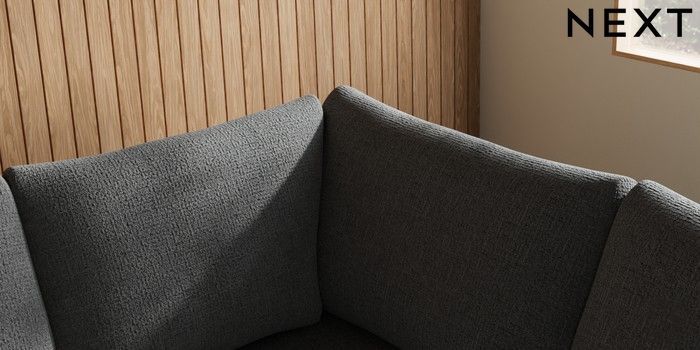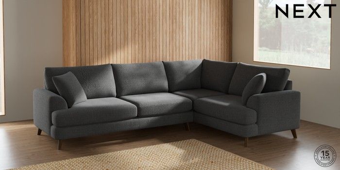 7.2.10 Parker Large Corner Sofa - Right Hand Chunky Texture Dark Grey Low Retro Tapered - Mid | Made Click here to use our website with more accessibility support, for example screen readers