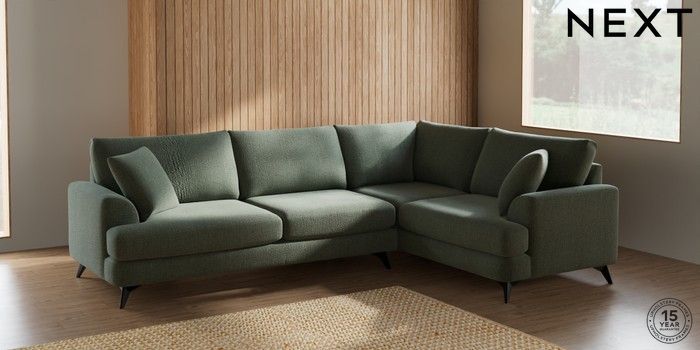 7.2.10 Parker Large Corner Sofa - Right Hand Chunky Texture Mid Forest Green High Metal - Black | Made Click here to use our website with more accessibility support, for example screen readers
