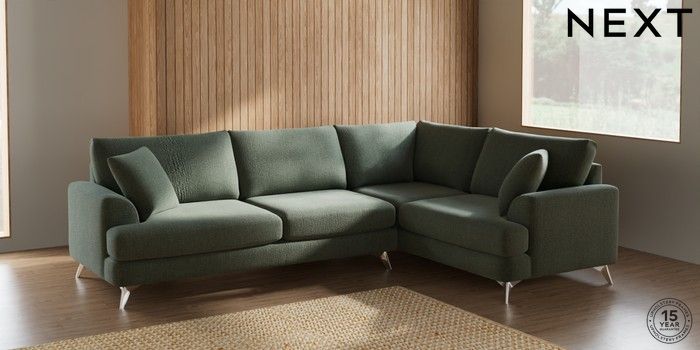 7.2.10 Parker Large Corner Sofa - Right Hand Chunky Texture Mid Forest Green High Metal - Chrome | Made Click here to use our website with more accessibility support, for example screen readers