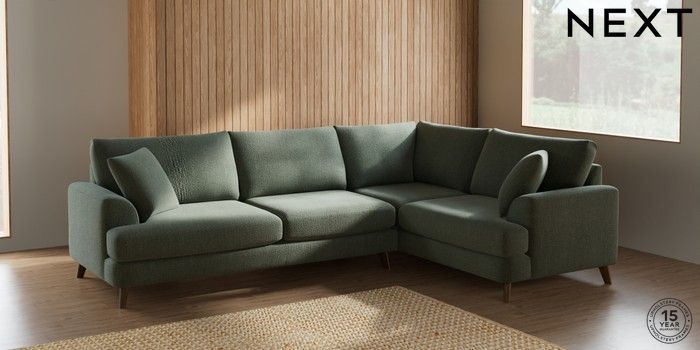 7.2.10 Parker Large Corner Sofa - Right Hand Chunky Texture Mid Forest Green Low Retro Tapered - Mid | Made Click here to use our website with more accessibility support, for example screen readers