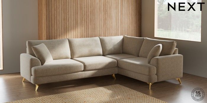 7.2.10 Parker Large Corner Sofa - Right Hand Chunky Weave Cream High Metal - Brass | Made Click here to use our website with more accessibility support, for example screen readers