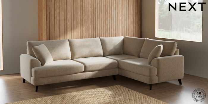 7.2.10 Parker Large Corner Sofa - Right Hand Chunky Weave Cream Low Retro Tapered - Dark | Made Click here to use our website with more accessibility support, for example screen readers