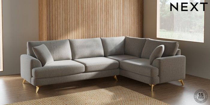 7.2.10 Parker Large Corner Sofa - Right Hand Chunky Weave Dove Grey High Metal - Brass | Made Click here to use our website with more accessibility support, for example screen readers