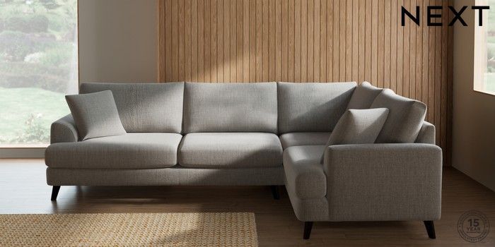 7.2.10 Parker Large Corner Sofa - Right Hand Chunky Weave Dove Grey Low Retro Tapered - Dark | Made Click here to use our website with more accessibility support, for example screen readers