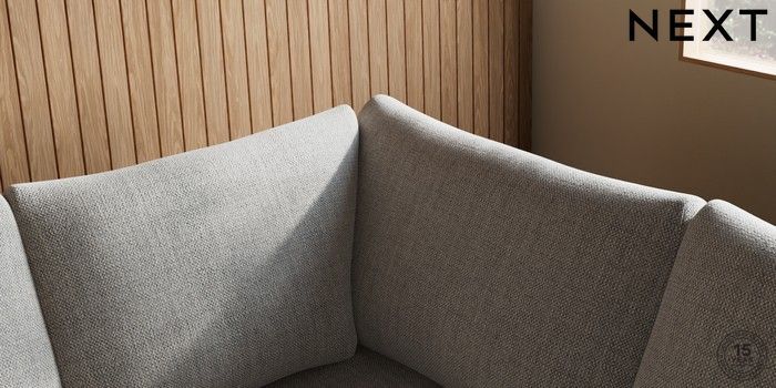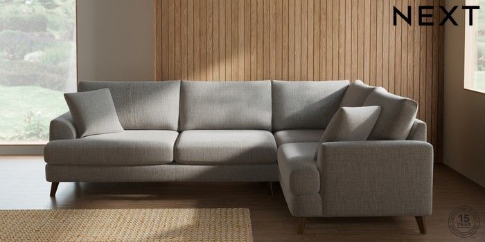 7.2.10 Parker Large Corner Sofa - Right Hand Chunky Weave Dove Grey Low Retro Tapered - Mid | Made Click here to use our website with more accessibility support, for example screen readers