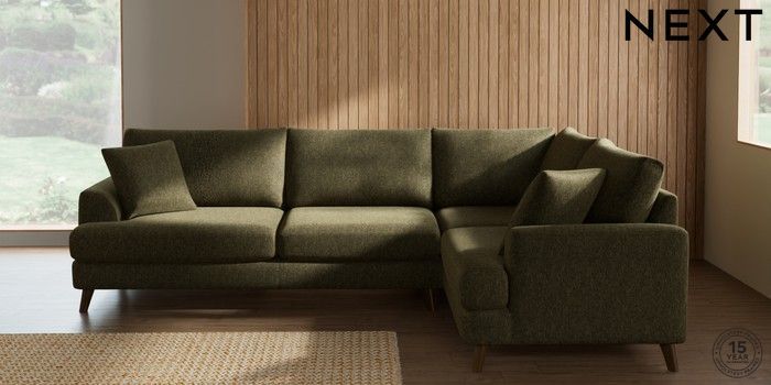 7.2.10 Parker Large Corner Sofa - Right Hand Cotswold Chenille Dark Green Low Retro Tapered - Mid | Made Click here to use our website with more accessibility support, for example screen readers