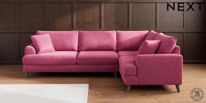 7.2.10 Parker Large Corner Sofa - Right Hand Cotswold Chenille Dark Raspberry Pink Low Retro Tapered - Mid | Made Click here to use our website with more accessibility support, for example screen readers