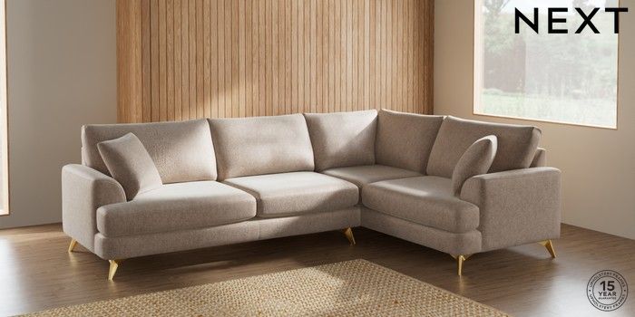 7.2.10 Parker Large Corner Sofa - Right Hand Cotswold Chenille Light Natural High Metal - Brass | Made Click here to use our website with more accessibility support, for example screen readers