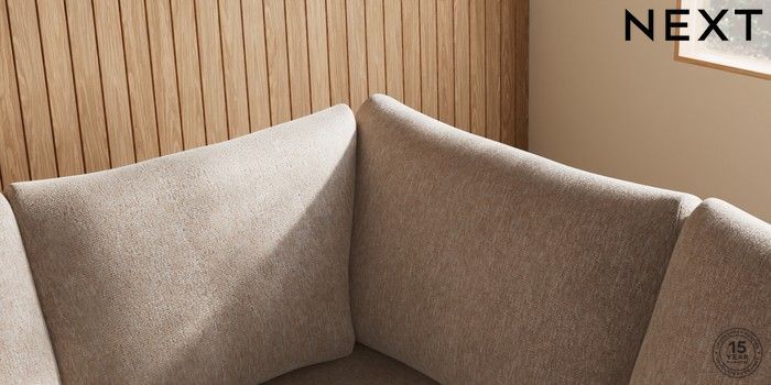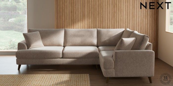 7.2.10 Parker Large Corner Sofa - Right Hand Cotswold Chenille Light Natural Low Retro Tapered - Mid | Made Click here to use our website with more accessibility support, for example screen readers