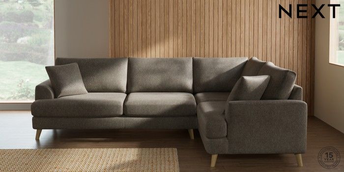 7.2.10 Parker Large Corner Sofa - Right Hand Cotswold Chenille Mid Mink Brown Low Retro Tapered - Light | Made Click here to use our website with more accessibility support, for example screen readers