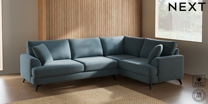7.2.10 Parker Large Corner Sofa - Right Hand Fine Chenille Easy Clean Mid Blue High Metal - Black | Made Click here to use our website with more accessibility support, for example screen readers
