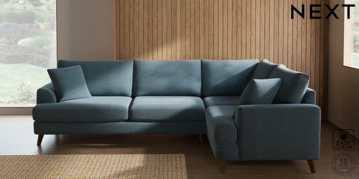 7.2.10 Parker Large Corner Sofa - Right Hand Fine Chenille Easy Clean Mid Blue Low Retro Tapered - Mid | Made Click here to use our website with more accessibility support, for example screen readers
