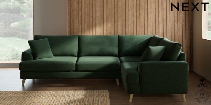 7.2.10 Parker Large Corner Sofa - Right Hand Fine Chenille Easy Clean Mid Khaki Green Low Retro Tapered - Light | Made Click here to use our website with more accessibility support, for example screen readers