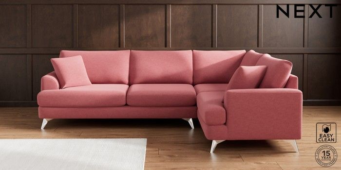 7.2.10 Parker Large Corner Sofa - Right Hand Fine Chenille Easy Clean Mid Pink High Metal - Chrome | Made Click here to use our website with more accessibility support, for example screen readers