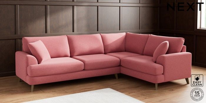 7.2.10 Parker Large Corner Sofa - Right Hand Fine Chenille Easy Clean Mid Pink Low Retro Tapered - Mid | Made Click here to use our website with more accessibility support, for example screen readers