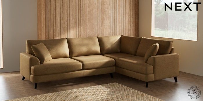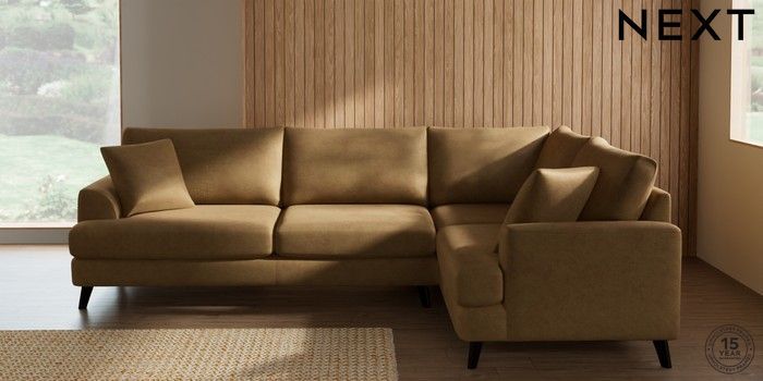 7.2.10 Parker Large Corner Sofa - Right Hand Luxe Chenille Honey Yellow Low Retro Tapered - Dark | Made Click here to use our website with more accessibility support, for example screen readers