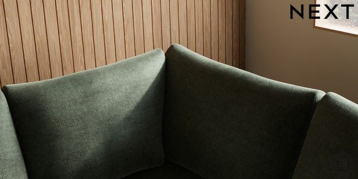 7.2.10 Parker Large Corner Sofa - Right Hand Luxe Chenille Mid Green Low Retro Tapered - Light | Made Click here to use our website with more accessibility support, for example screen readers