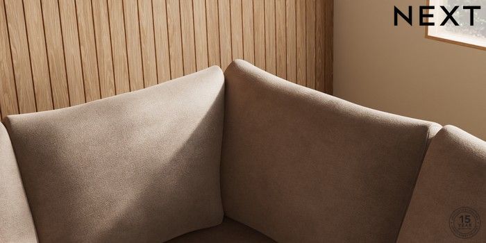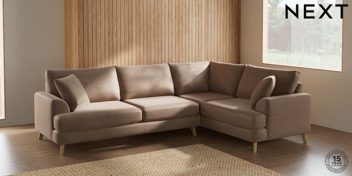 7.2.10 Parker Large Corner Sofa - Right Hand Luxe Chenille Mid Natural Low Retro Tapered - Light | Made Click here to use our website with more accessibility support, for example screen readers