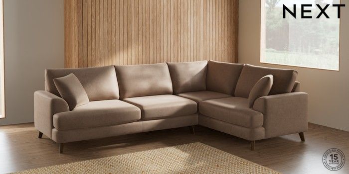 7.2.10 Parker Large Corner Sofa - Right Hand Luxe Chenille Mid Natural Low Retro Tapered - Mid | Made Click here to use our website with more accessibility support, for example screen readers
