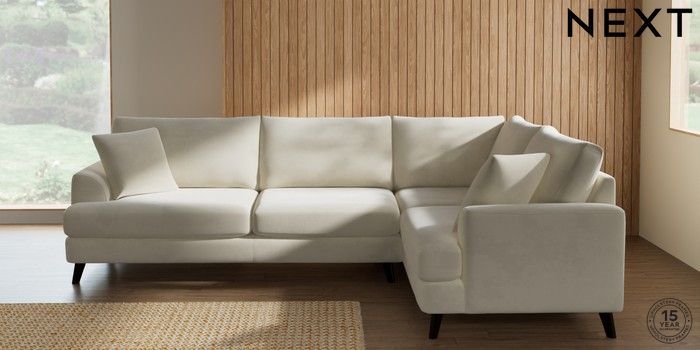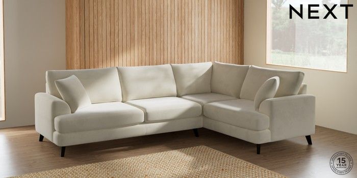 7.2.10 Parker Large Corner Sofa - Right Hand Luxe Chenille Oyster Low Retro Tapered - Dark | Made Click here to use our website with more accessibility support, for example screen readers