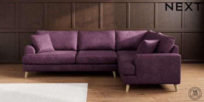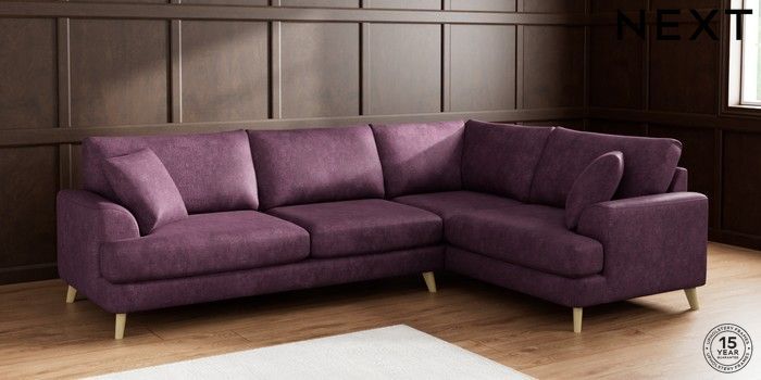 7.2.10 Parker Large Corner Sofa - Right Hand Plush Chenille Dark Plum Purple Low Retro Tapered - Light | Made Click here to use our website with more accessibility support, for example screen readers
