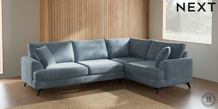 7.2.10 Parker Large Corner Sofa - Right Hand Plush Chenille Light Blue High Metal - Black | Made Click here to use our website with more accessibility support, for example screen readers