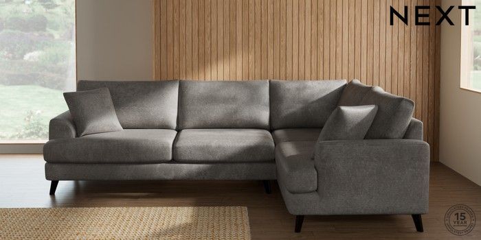 7.2.10 Parker Large Corner Sofa - Right Hand Plush Chenille Light Grey Low Retro Tapered - Dark | Made Click here to use our website with more accessibility support, for example screen readers