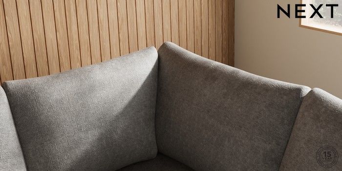 7.2.10 Parker Large Corner Sofa - Right Hand Plush Chenille Light Grey Low Retro Tapered - Light | Made Click here to use our website with more accessibility support, for example screen readers