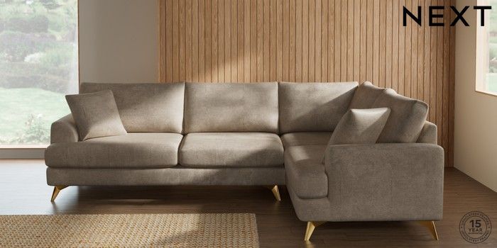 7.2.10 Parker Large Corner Sofa - Right Hand Plush Chenille Light Natural High Metal - Brass | Made Click here to use our website with more accessibility support, for example screen readers