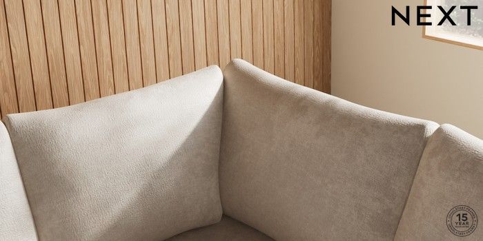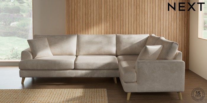 7.2.10 Parker Large Corner Sofa - Right Hand Plush Chenille Oyster Low Retro Tapered - Light | Made Click here to use our website with more accessibility support, for example screen readers