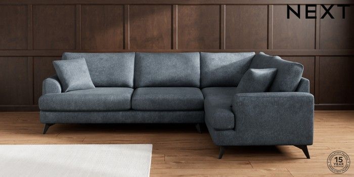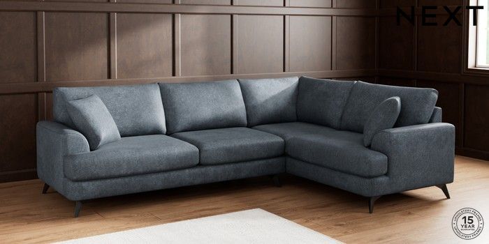 7.2.10 Parker Large Corner Sofa - Right Hand Plush Chenille Slate Blue High Metal - Black | Made Click here to use our website with more accessibility support, for example screen readers