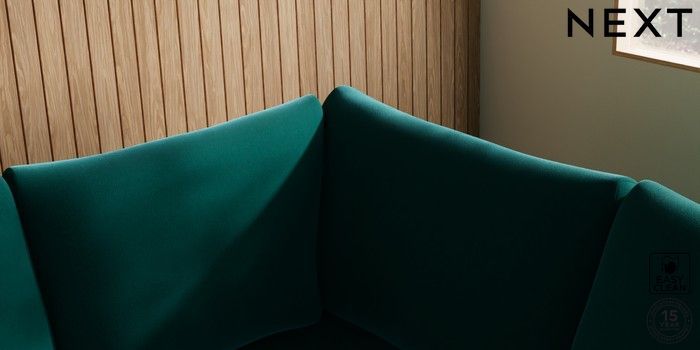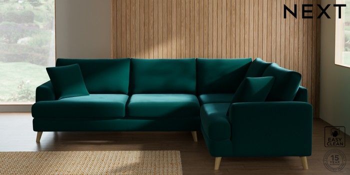 7.2.10 Parker Large Corner Sofa - Right Hand Plush Velvet Easy Clean Juniper Green Low Retro Tapered - Light | Made Click here to use our website with more accessibility support, for example screen readers
