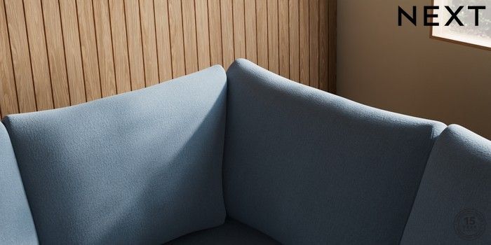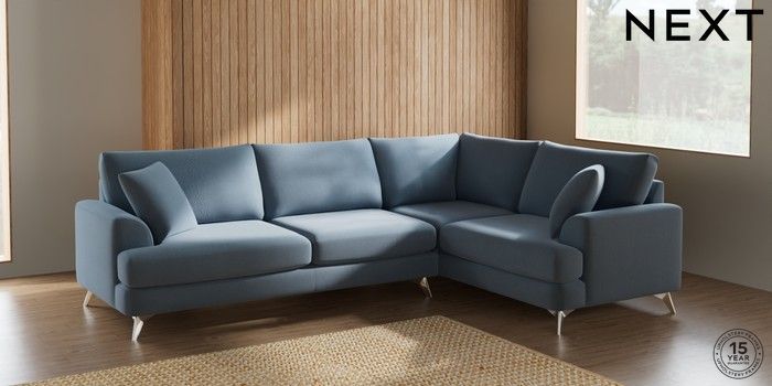7.2.10 Parker Large Corner Sofa - Right Hand Relaxed Linen Look Mid Blue High Metal - Chrome | Made Click here to use our website with more accessibility support, for example screen readers