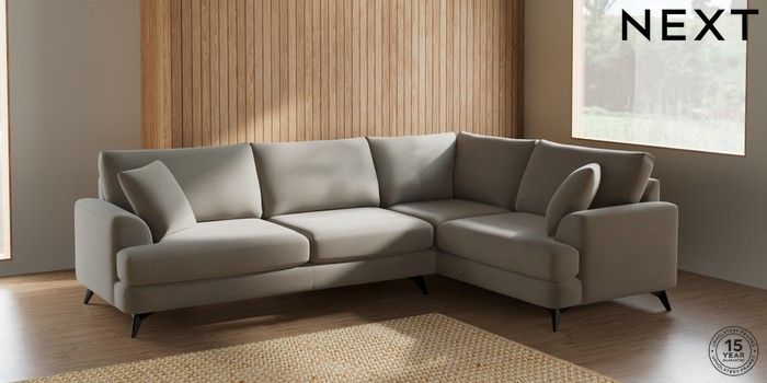7.2.10 Parker Large Corner Sofa - Right Hand Ripple Chenille Light Natural High Metal - Black | Made Click here to use our website with more accessibility support, for example screen readers
