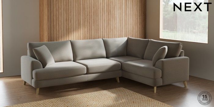 7.2.10 Parker Large Corner Sofa - Right Hand Ripple Chenille Light Natural Low Retro Tapered - Light | Made Click here to use our website with more accessibility support, for example screen readers