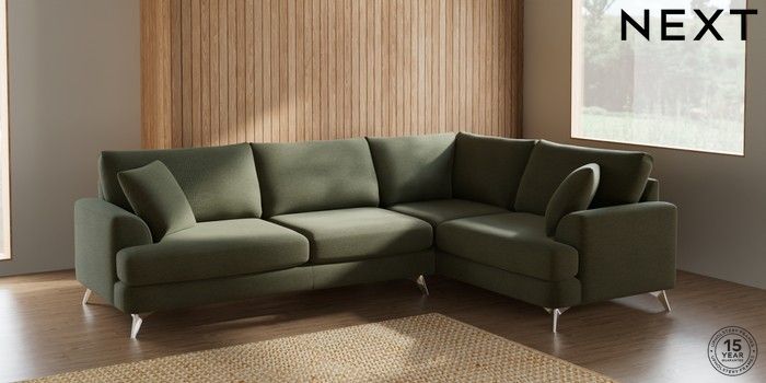 7.2.10 Parker Large Corner Sofa - Right Hand Ripple Chenille Mid Moss Green High Metal - Chrome | Made Click here to use our website with more accessibility support, for example screen readers