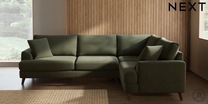 7.2.10 Parker Large Corner Sofa - Right Hand Ripple Chenille Mid Moss Green Low Retro Tapered - Mid | Made Click here to use our website with more accessibility support, for example screen readers