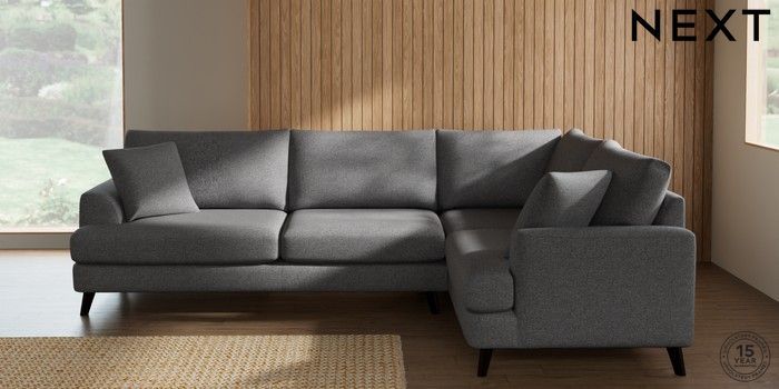 7.2.10 Parker Large Corner Sofa - Right Hand Studio Chenille Mid Grey Low Retro Tapered - Dark | Made Click here to use our website with more accessibility support, for example screen readers