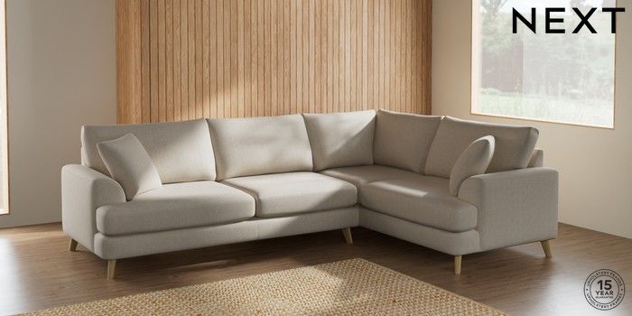 7.2.10 Parker Large Corner Sofa - Right Hand Tweedy Chenille Oyster Low Retro Tapered - Light | Made Click here to use our website with more accessibility support, for example screen readers