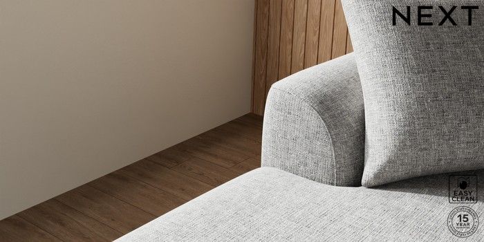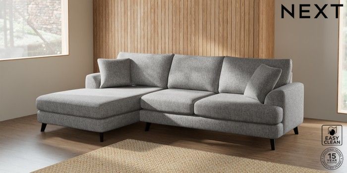 7.2.10 Parker Large Sofa Chaise - Left Hand Chunky Boucle Easy Clean Light Grey Low Retro Tapered - Dark | Made Click here to use our website with more accessibility support, for example screen readers