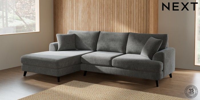 7.2.10 Parker Large Sofa Chaise - Left Hand Chunky Chenille Dark Grey Low Retro Tapered - Dark | Made Click here to use our website with more accessibility support, for example screen readers