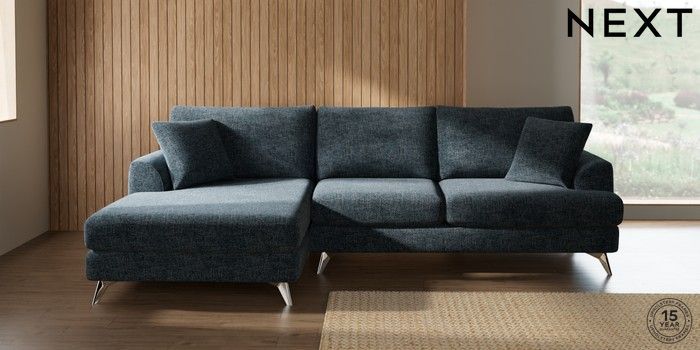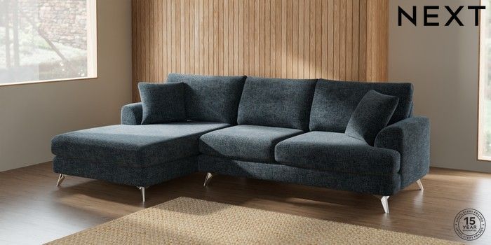 7.2.10 Parker Large Sofa Chaise - Left Hand Chunky Chenille Dark Navy Blue High Metal - Chrome | Made Click here to use our website with more accessibility support, for example screen readers