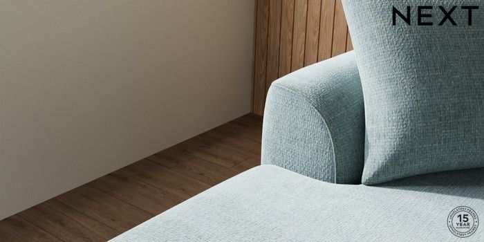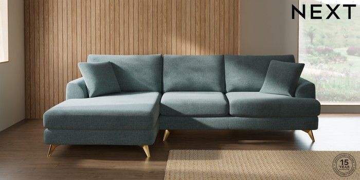 7.2.10 Parker Large Sofa Chaise - Left Hand Chunky Chenille Light Teal Green High Metal - Brass | Made Click here to use our website with more accessibility support, for example screen readers
