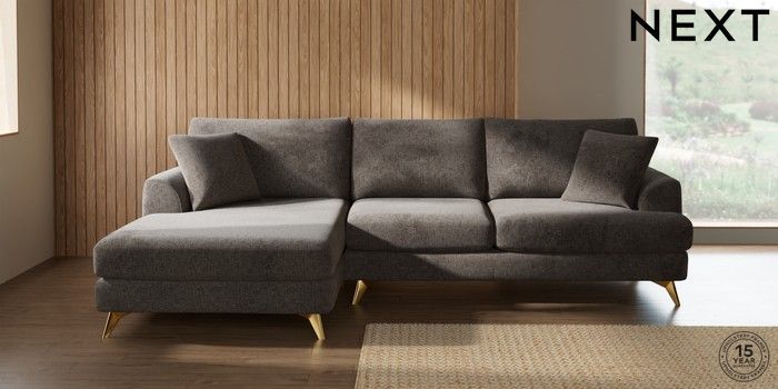 7.2.10 Parker Large Sofa Chaise - Left Hand Chunky Chenille Mink Brown High Metal - Brass | Made Click here to use our website with more accessibility support, for example screen readers