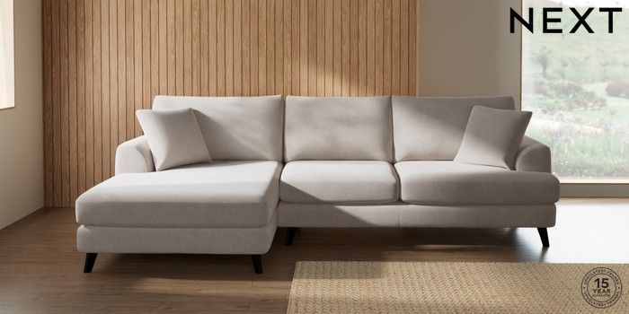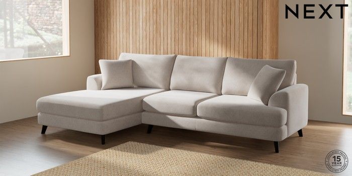 7.2.10 Parker Large Sofa Chaise - Left Hand Chunky Chenille Oyster Low Retro Tapered - Dark | Made Click here to use our website with more accessibility support, for example screen readers