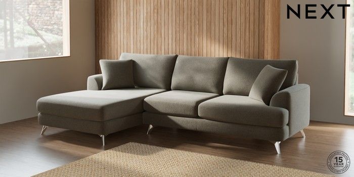 7.2.10 Parker Large Sofa Chaise - Left Hand Chunky Marl Light Olive Green High Metal - Chrome | Made Click here to use our website with more accessibility support, for example screen readers